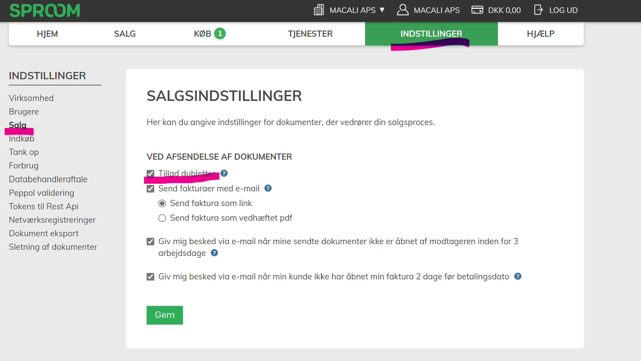Så skal du aktivere denne funktion under indstillinger i Sproom